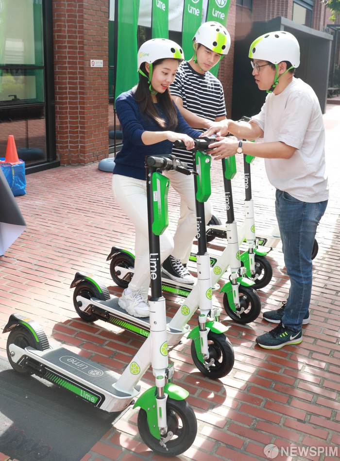 [서울=뉴스핌] 최상수 기자 = 전동킥보드 서비스를 제공하는 라임 (Lime) 코리아가 27일 서울 중구 정동에서 킥보드 안전교육 프로그램인 퍼스트 라이드 서울(First Ride Seoul) 행사를 가졌다. 행사 참가자들이 전동킥보드 안전교육을 받고 있다. 처음 전동킥보드를 접하는 사용자의 안전한 주행을 돕는 이번 안전교육 이벤트는 탑승 전 점검사항, 전동킥보드 작동법, 주행 시 주의사항 및 에티켓 등의 내용으로 구성됐다. 라임은 전동킥보드 공유 서비스를 제공하는 세계적인 마이크로 모빌리티 스타트업이다.