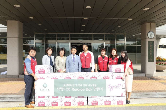 [수원=뉴스핌] 정은아 기자 = 롯데백화점 수원점에서는 26일 수원시 권선구청 관내 저소득층 여학생들을 위한 여성위생용품인 핑크박스를 권선구청에 전달했다.