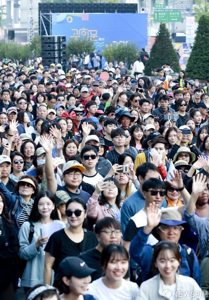 [서울=뉴스핌] 이형석 기자 = 29일 오전 서울 종로구 광화문광장에서 열린 서울 걷·자 페스티벌에서 시민들이 반포한강시민공원으로 향하고 있다. 2019.09.29 leehs@newspim.com
