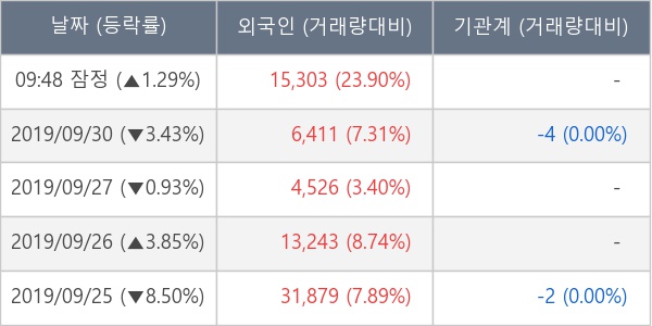 [표] 외국인ㆍ기관 순매매량 (단위 주)