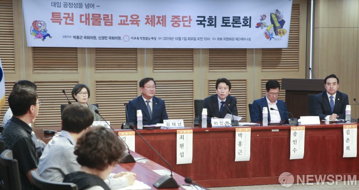 [서울=뉴스핌] 이형석 기자 = 이인영 더불어민주당 원내대표가 1일 오전 서울 여의도 국회 의원회관에서 열린 특권 대물림 교육 체제 중단 국회 토론회에서 인사말을 하고 있다. 2019.10.01 leehs@newspim.com