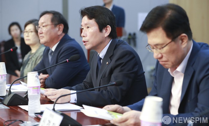[서울=뉴스핌] 이형석 기자 = 이인영 더불어민주당 원내대표가 1일 오전 서울 여의도 국회 의원회관에서 열린 특권 대물림 교육 체제 중단 국회 토론회에서 인사말을 하고 있다. 2019.10.01 leehs@newspim.com