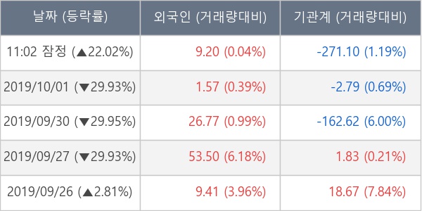 [장중수급포착] 에스모, 외국인 6일 연속 순매수행진... 주가 +22.02%