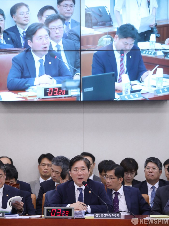 [서울=뉴스핌] 백인혁 기자 = 성윤모 산업통상자원부 장관이 2일 오후 서울 여의도 국회에서 산업통상자원중소벤처기업위원회 산업통상자원부, 특허청, 한국발명진흥회, 한국특허정보원 등에 관한 국정감사에서 홍의락 자유한국당 의원의 질의에 답변하고 있다. 2019.10.02 dlsgur9757@newspim.com