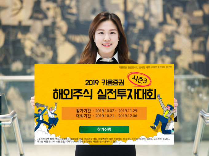 [서울=뉴스핌] 이고은 기자 = 키움증권(대표이사 이현)은 총 상금 4250만원 규모의 '2019 키움증권 해외주식 실전투자대회 시즌3'의 신청접수를 시작한다고 8일 밝혔다.
