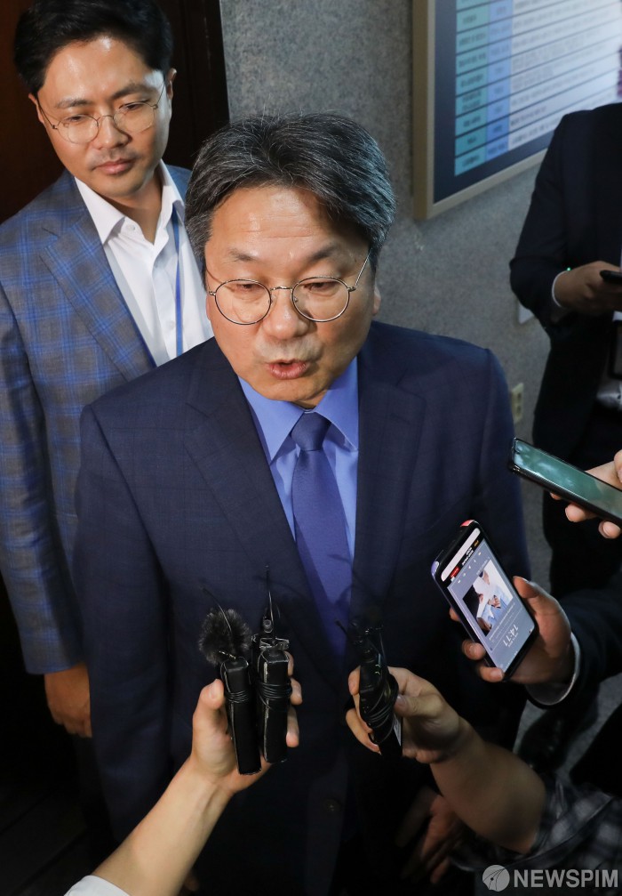 [서울=뉴스핌] 최상수 기자 = 조국 법무부 장관이 사퇴의사를 밝힌 14일 오후 서울 여의도 국회에서 강기정 청와대 정무수석이 이해찬 더불어민주당 대표를 면담한 뒤 나서고 있다. 2019.10.14 kilroy023@newspim.com