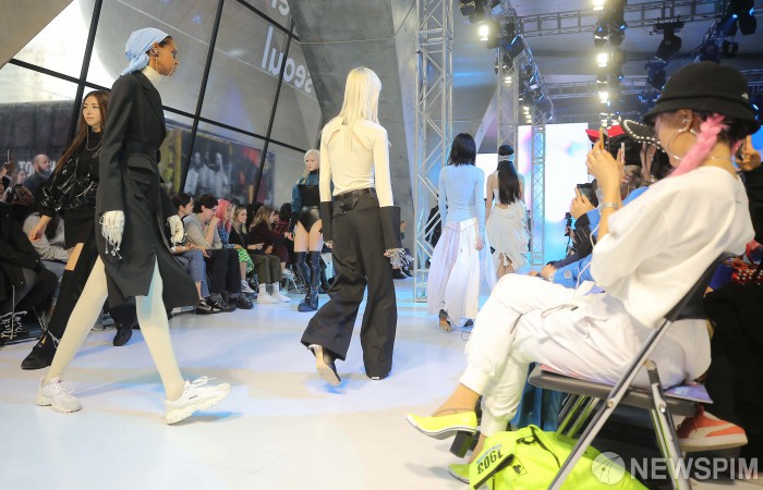 [서울=뉴스핌] 윤창빈 기자 = 15일 오후 서울 중구 동대문디자인플라자(DDP)에서 열린 '2020 S/S 서울패션위크(2020 S/S Seoul Fashion Week)' 환영(FAN YOUNG/양영환, 강송희 디자이너)컬렉션에서 모델들이 런웨이를 걷고 있다. 2019.10.15 pangbin@newspim.com