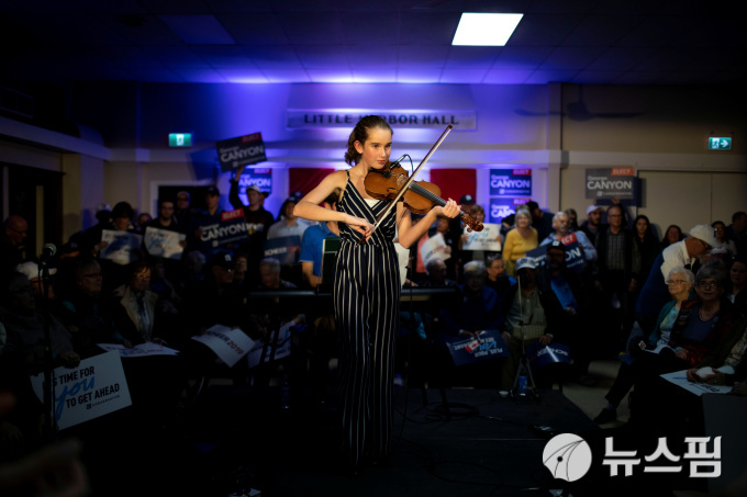 | [리틀하버 로이터=뉴스핌] 전솔희 인턴기자 = 바이올린 연주자가 17일(현지시간) 캐나다 노바스코샤 리틀하버에서 열린 앤드루 쉬어 보수당 대표의 선거 유세 행사가 시작하기 전 연주를 하고 있다. 2019.10.17. |