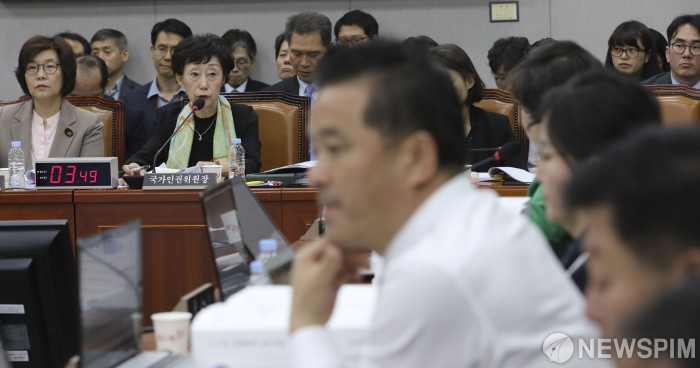 [서울=뉴스핌] 최상수 기자 = 25일 오전 서울 여의도 국회 운영위원회에서 열린 국가인권위원회에 대한 국정감사에서 하고 있다. 2019.10.25 kilroy023@newspim.com