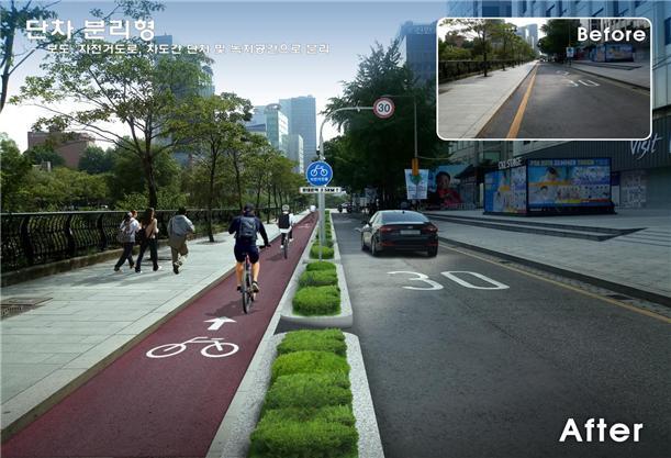 특히 시는 기존 차도와 보도를 축소하지 않고 데크나 발코니를 설치하거나 도로 간 단차를 활용하는 것과 같은 총 4가지 설치유형을 맞춤형으로 도입한다. 차도 옆 일부 공간을 자전거에 할애하는 불안한 더부살이가 아닌 차량과 완전히 분리돼 연속성과 안전성, 독립성을 갖추게 되는 것이다.