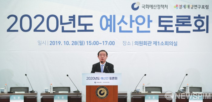 [서울=뉴스핌] 이형석 기자 = 장병완 경제재정연구포럼 공동대표가 28일 오후 서울 여의도 국회 의원회관에서 열린 2020년도 예산안 토론회에서 축사를 하고 있다. 2019.10.28 leehs@newspim.com