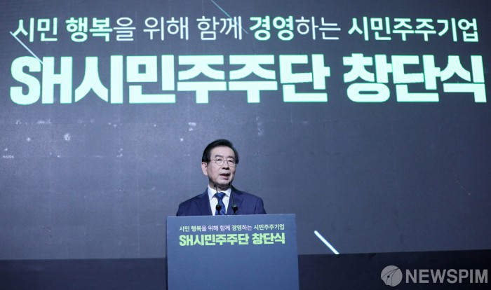 [서울=뉴스핌] 백인혁 기자 = 박원순 서울시장이 25일 오후 서울 중구 더플라자 호텔에서 열린 SH시민주주단 창단식에서 환영사를 하고 있다. 2019.10.25 dlsgur9757@newspim.com