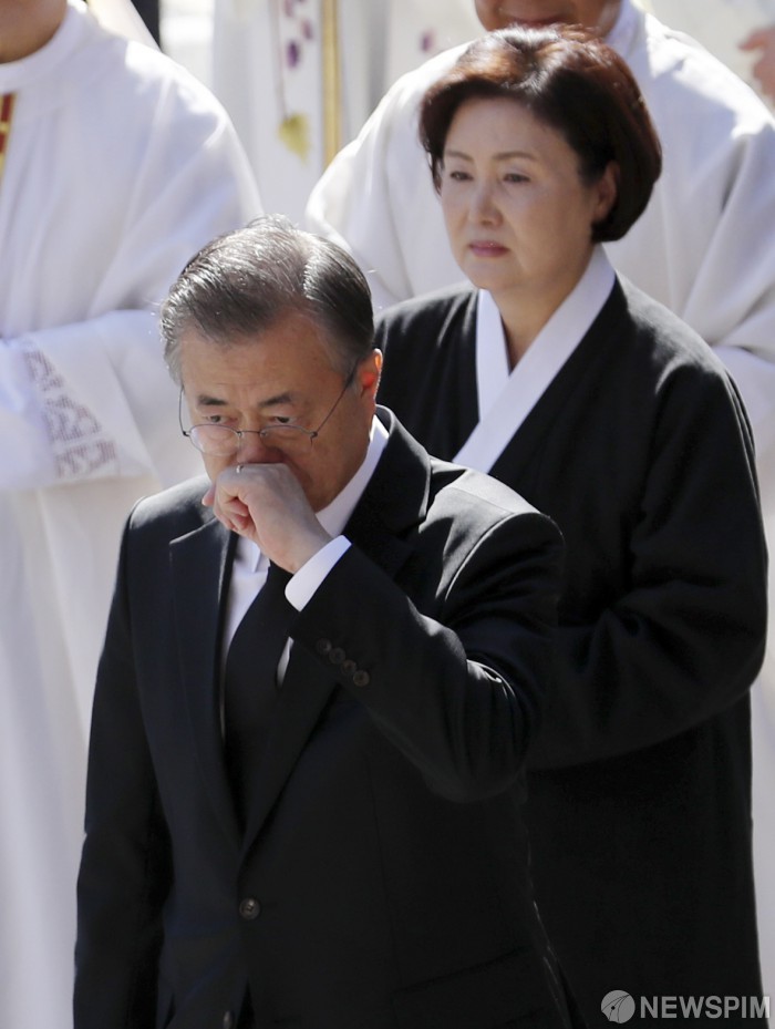 [부산=뉴스핌] 이형석 기자 = 문재인 대통령이 31일 오전 부산 수영구 남천성당에서 열린 모친 강한옥 여사 장례미사를 마치고 성당을 나와 장지로 이동하고 있다. 2019.10.31 leehs@newspim.com