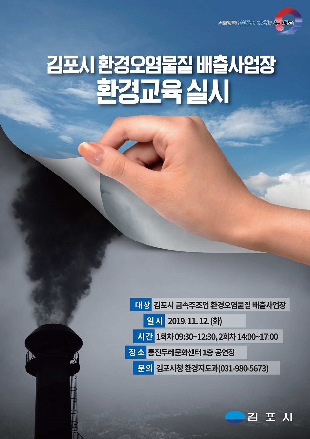 | [김포=뉴스핌] 박승봉 기자 = 김포시가 11월 12일 실시하는 2019 하반기 환경오염물질 배출업소 교육 포스터. [사진=김포시] 2019.11.05 1141world@newspim.com |