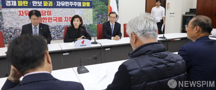 [서울=뉴스핌] 최상수 기자 = 나경원 자유한국당 원내대표가 5일 오후 서울 여의도 국회에서 농민단체와 간담회를 가지고 있다. 2019.11.05 kilroy023@newspim.com