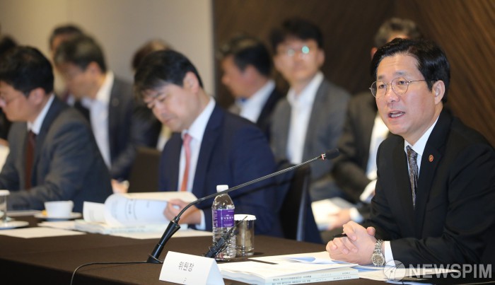[서울=뉴스핌] 백인혁 기자 = 성윤모 산업통상자원부 장관(오른쪽)이 6일 오전 서울 중구 더플라자 호텔에서 열린 제18차 에너지위원회에서 모두발언을 하고 있다. 2019.11.06 dlsgur9757@newspim.com