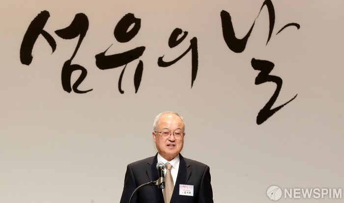 [서울=뉴스핌] 정일구 기자 = 성기학 한국섬유산업연합회 회장이 11일 오후 서울 강남구 섬유센터에서 열린 제33회 섬유의 날 기념식에서 기념사를 하고 있다. 2019.11.11 mironj19@newspim.com