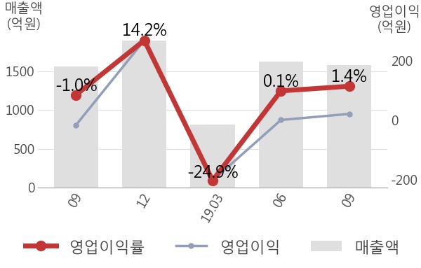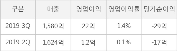 영업이익률을 자세히 살펴보면, 매출은 1,580억으로 전분기 대비해서 -2.7% 감소한 반면, 영업이익은 22억으로 1,709.2% 증가하였다. 매출은 크게 변하지 않았지만 영업이익이 증가하여 영업이익률도 상승한 것을 알 수 있다.