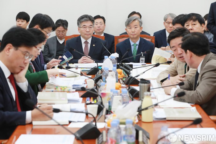 [서울=뉴스핌] 이형석 기자 = 민갑룡 경찰청장이 15일 오전 서울 여의도 국회에서 열린 예산결산특별위원회 예산안조정소위원회의에 자리 하고 있다. 2019.11.15 leehs@newspim.com