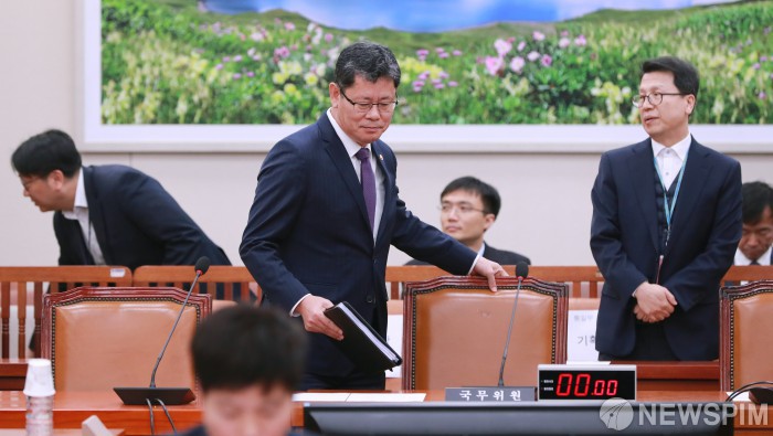 [서울=뉴스핌] 이형석 기자 = 김연철 통일부 장관이 15일 오전 서울 여의도 국회에서 열린 외교통일위원회 전체회의에 참석 하고 있다. 2019.11.15 leehs@newspim.com
