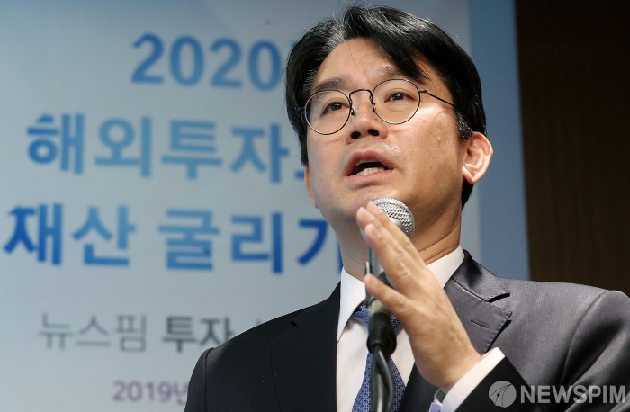 [서울=뉴스핌] 정일구 기자 = 김준년 비전자산운용 대표가 21일 오후 서울 여의도 63컨벤션센터에서 열린 제3회 뉴스핌 투자포럼에서 '2020년 미국 채권 투자 전략'을 주제로 강연을 하고 있다. '2020년 해외투자로 재산 굴리기'를 주제로 개최된 '뉴스핌 투자포럼'은 1%금리 시대를 헤쳐나갈 '해외투자'에 대한 모든 노하우를 제공하고자 마련됐다. 2019.11.21 mironj19@newspim.com