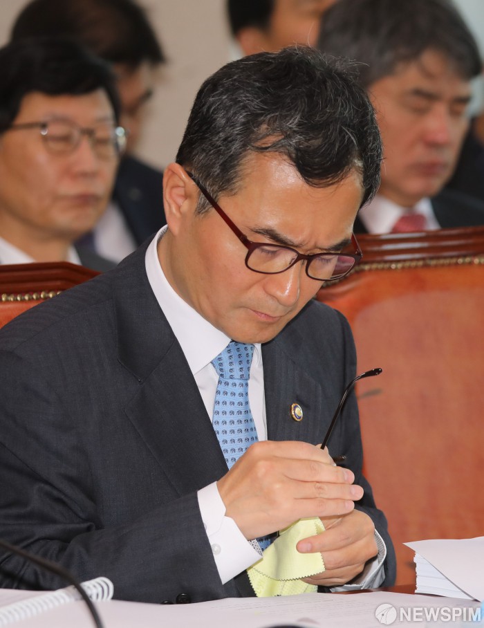 [서울=뉴스핌] 최상수 기자 = 박원주 특허청장이 22일 오전 서울 여의도 국회에서 열린 산업통상자원중소벤처기업위원회 전체회의에서 안경을 닦고 있다. 2019.11.22 kilroy023@newspim.com