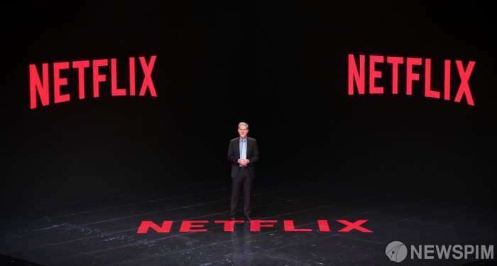 [서울·부산=뉴스핌] 특별취재단 = 리드 헤이스팅스 넷플릭스 CEO가 25일 부산 벡스코 2전시장에서 열린 2019 한-아세안 특별 정상회의 '문화혁신포럼' 행사에 참석해 발표하고 있다. [사진=2019 한-아세안 특별정상회의 제공] 2019.11.25 photo@newspim.com