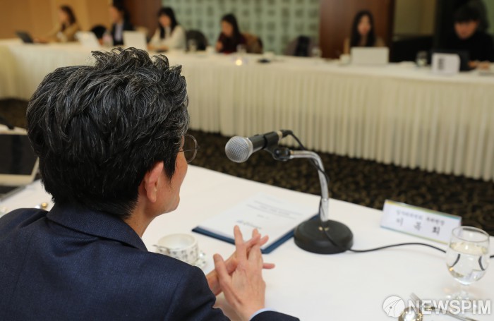 [서울=뉴스핌] 백인혁 기자 = 이목희 일자리위원회 부위원장이 28일 오후 서울 중구 프레스센터에서 열린 2019 일자리위원회 등록기자 오찬 간담회에서 모두발언을 하고 있다. 2019.11.28 dlsgur9757@newspim.com