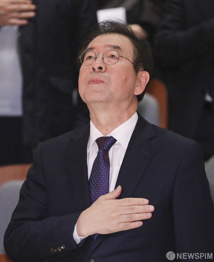 [사진] 국민의례 하는 박원순 서울시장