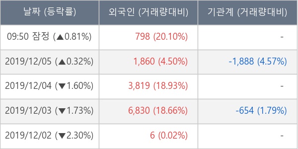 [표] 외국인ㆍ기관 순매매량 (단위 주)
