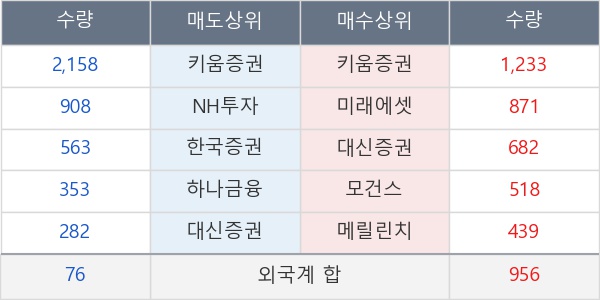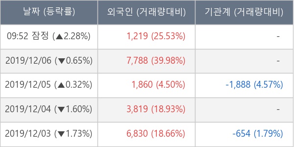 [표] 외국인ㆍ기관 순매매량 (단위 주)