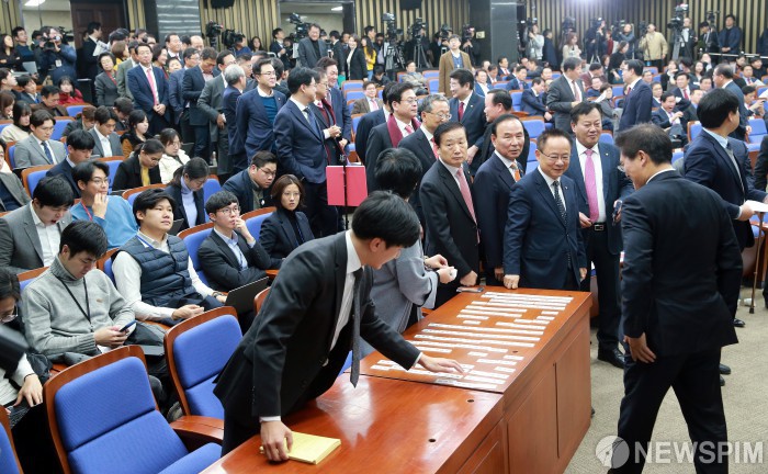[서울=뉴스핌] 이형석 기자 = 9일 오전 서울 여의도 국회에서 자유한국당 원내대표 및 정책위원회 의장 선출 의원총회가 열리고 있다. 2019.12.09 leehs@newspim.com