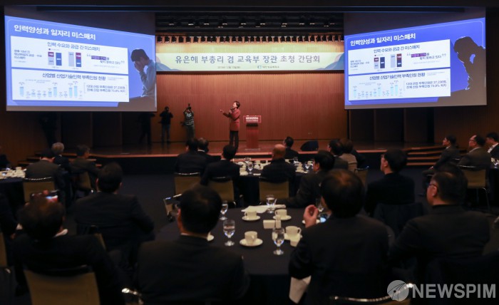 [서울=뉴스핌] 최상수 기자 = 유은혜 사회부총리 겸 교육부 장관이 10일 오전 서울 중구 대한상공회의소 국제회의장에서 열린 초청 CEO간담회에서 '지역·산업 맞춤형 미래 혁신인재 양성 추진방향' 등을 주제로 발표하고 있다. 2019.12.10 kilroy023@newspim.com