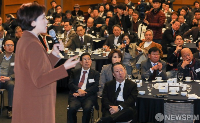 [서울=뉴스핌] 최상수 기자 = 유은혜 사회부총리 겸 교육부 장관이 10일 오전 서울 중구 대한상공회의소 국제회의장에서 열린 초청 CEO간담회에서 '지역·산업 맞춤형 미래 혁신인재 양성 추진방향' 등을 주제로 발표하고 있다. 2019.12.10 kilroy023@newspim.com