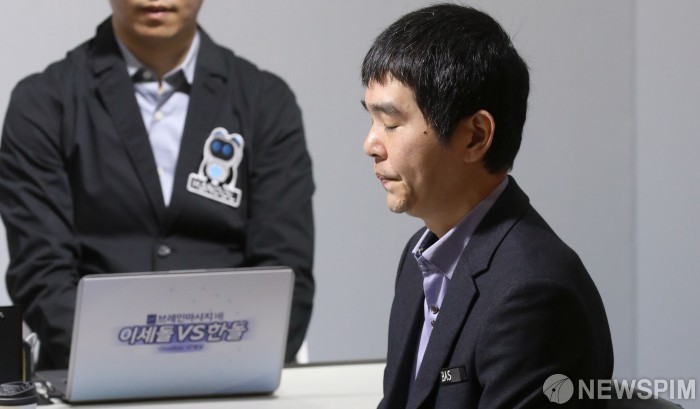 [서울=뉴스핌] 최상수 기자 = 이세돌 9단이 18일 오후 서울 강남구 바디프렌드 도곡타워에서 열린 '브레인마사지배 이세돌VS한돌 - Goodbye 이세돌'에서 생각에 잠겨 있다. 2019.12.18 kilroy023@newspim.com