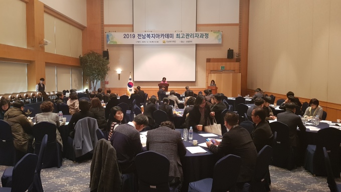 [무안=뉴스핌] 지영봉 기자 = 전남복지재단은 19일 공공과 민간 사회복지 리더의 역량 강화를 위한 아카데미 '최고관리자과정'을 운영, 정부의 복지 분야 핵심 과제인 '사회복지서비스원' 추진 전략을 공유했다.