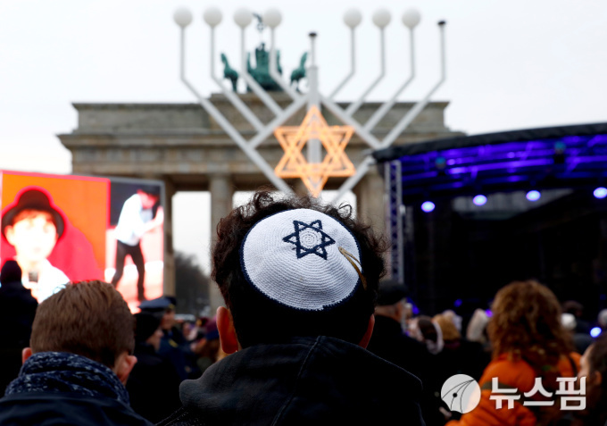 | [베를린 로이터=뉴스핌] 최원진 기자= 독일 베를린 파리저 광장의 건축물인 브란덴부르크 문 앞에 하누카(유대교 명절) 맞이 메노라(촛대) 점등 행사가 열렸다. 2019.12.22 wonjc6@newspim.com |