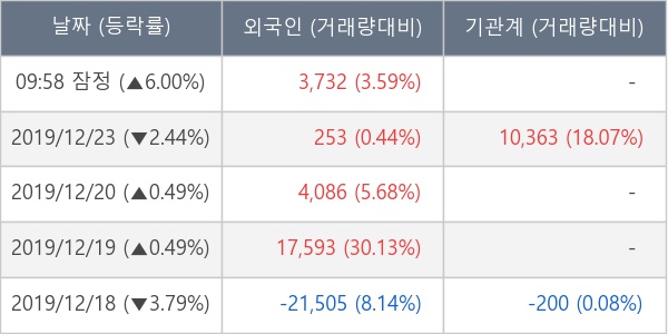 [표] 외국인ㆍ기관 순매매량 (단위 주)