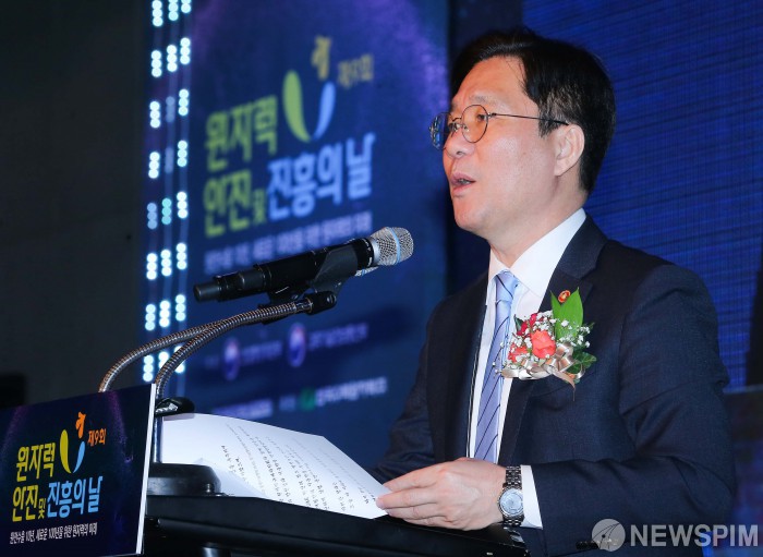 [서울=뉴스핌] 윤창빈 기자 = 성윤모 산업통상자원부 장관이 27일 오후 서울 강남구 코엑스 인터컨티넨탈 호텔에서 열린 제9회 원자력 안전 및 진흥의 날 기념식에서 축사를 하고 있다. 2019.12.27 pangbin@newspim.com