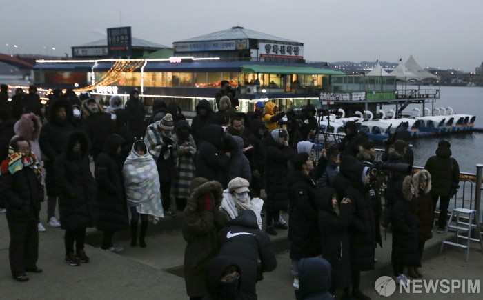 [서울=뉴스핌] 이한결 기자 = 2020년 경자년(庚子年) 첫날인 1일 오전 서울 영등포구 선유도 연결 다리인 선유교에서 시민들이 올해 첫 일출을 보기 위해 기다리고 있다. 2020.01.01 alwaysame@newspim.com