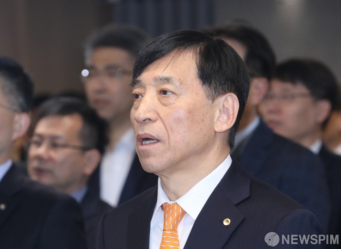 [서울=뉴스핌] 백인혁 기자 = 이주열 한국은행 총재가 2일 오전 서울 중구 삼성본관빌딩 한국은행에서 열린 2020 한국은행 시무식에 참석해 애국가를 제창하고 있다 . 2020.01.02 dlsgur9757@newspim.com