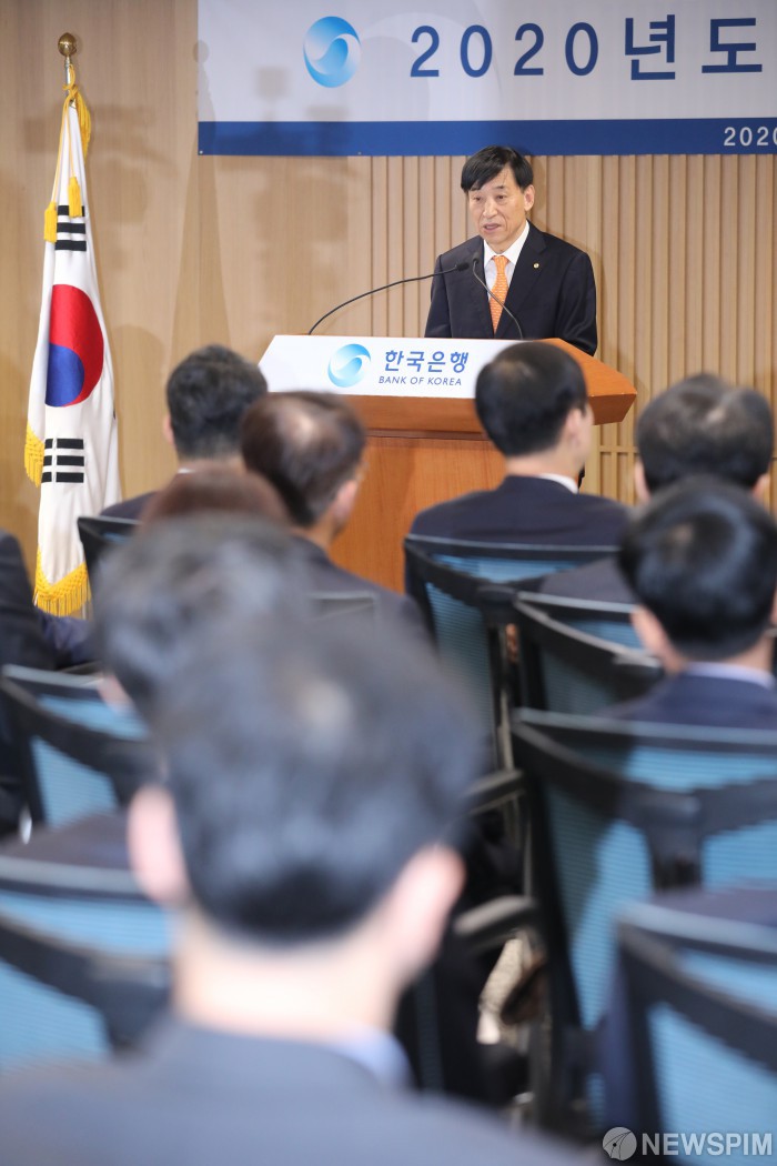 [서울=뉴스핌] 백인혁 기자 = 이주열 한국은행 총재가 2일 오전 서울 중구 삼성본관빌딩 한국은행에서 열린 2020 한국은행 시무식에서 신년사를 하고 있다 . 2020.01.02 dlsgur9757@newspim.com