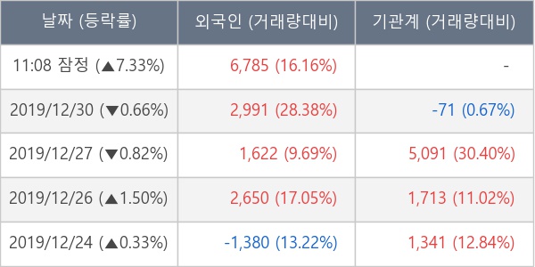 [표] 외국인ㆍ기관 순매매량 (단위 주)