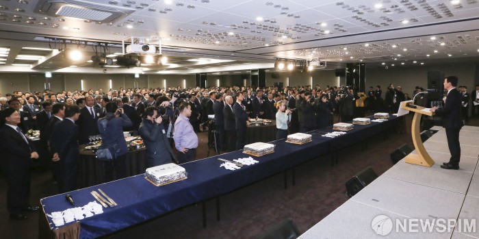 [서울=뉴스핌] 이한결 기자 = 문성혁 해양수산부 장관이 6일 오전 서울 종로구 세종문화회관 세종홀에서 열린 ‘2020년 해양수산가족 신년인사회’에서 인사말을 하고 있다. 2020.01.06 alwaysame@newspim.com
