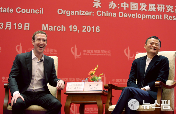 | [베이징 로이터=뉴스핌] 김선미 기자 = 2016년 3월 중국 베이징에서 개최된 중국개발포럼에서 만난 마크 주커버그 페이스북 최고경영자(CEO)와 마윈(馬雲) 알리바바 창업자. 2016.03.19 gong@newspim.com |