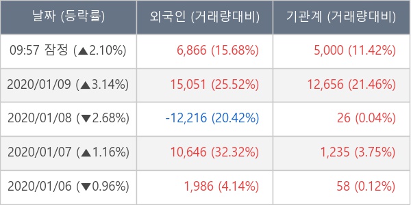 [표] 외국인ㆍ기관 순매매량 (단위 주)