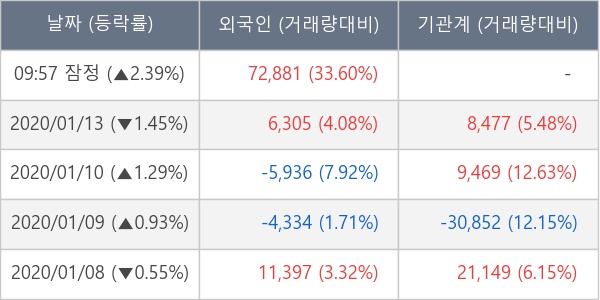 [표] 외국인ㆍ기관 순매매량 (단위 주)