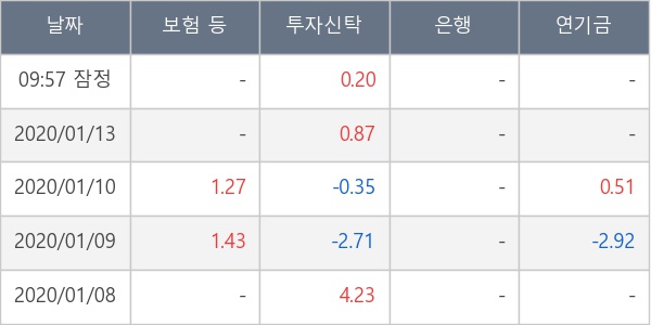 [표] 주요 기관별 순매매량 (단위 만주)