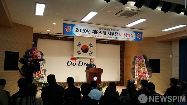 [동두천=뉴스핌] 양상현 기자 = ㈔한국국악협회 동두천지회는 최근 동두천시민회관에서 김경수 제9대 지부장 취임식을 개최했다고 15일 밝혔다. 김경수 신임 지부장은 동두천시립이담농악단 꼭두쇠로 활약하고 있으며, 우리의 전통예술의 발전을 위해 활발히 노력하고 있다. 김 지부장은 "소통과 화합으로 변화된 국악협회의 모습을 통해 동두천 국악협회를 더욱 발전시킬 수 있도록 최선을 다하겠다"고 했다. 2020.01.15 yangsanghyun@newspim.com