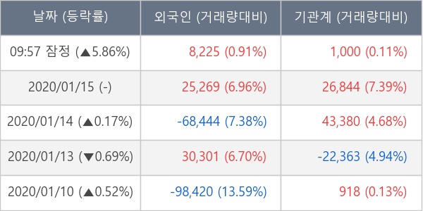 [표] 외국인ㆍ기관 순매매량 (단위 주)